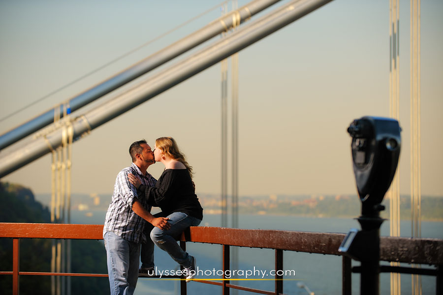 We could not have enjoyed our session more with Jill + Paul. We knew years ago, when we met them at Lisa + Matt’s wedding, that we wanted to be their photographers when the time was right. Well, there was no doubt that everything was oh-so-right during their Extended Engagement Session. We joined them at their favorite places near and around the George Washington Bridge, where we took advantage of the unique local flavor and sights of New Jersey and New York City. Having such a beautiful view of the Englewood Cliffs, the Hudson River, and NYC, we simply couldn’t get enough of this fun and trusting couple. The Harley Davidson motorcycle they brought along added the finishing touch to our session. We can’t wait for their Winter wedding to come!