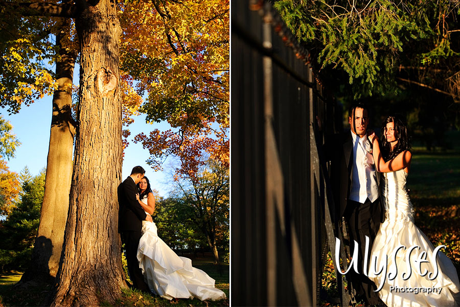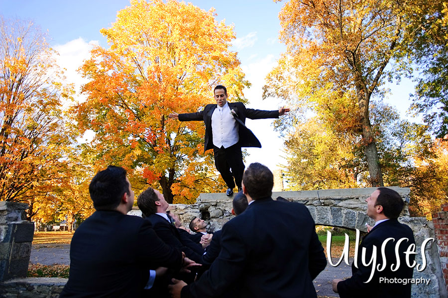 Erin & George’s wedding was every bit as much fun as we’d anticipated it would be. We knew George’s Greek heritage would make for some particularly warm moments throughout the day. With over 30 of their closest family & friends in their party, it sometimes felt as if everyone invited to the wedding was also somehow involved in the photos, but this only added to the great fun factor. Everyone let us in on the fun and energy of the day (including George’s stunt, a “death defying leap” into the arms of his groomsmen), which always makes for some of our favorite times when we’re shooting. Erin was particularly beautiful in her dramatic dress and blue Manolos, but she made sure they were working for HER, and not the other way around. We had a fantastic time with this awesome couple as we squeezed the last bit of autumn sunlight out of their photo session. And then it was time to join everyone for some Greek dancing and a huge party!